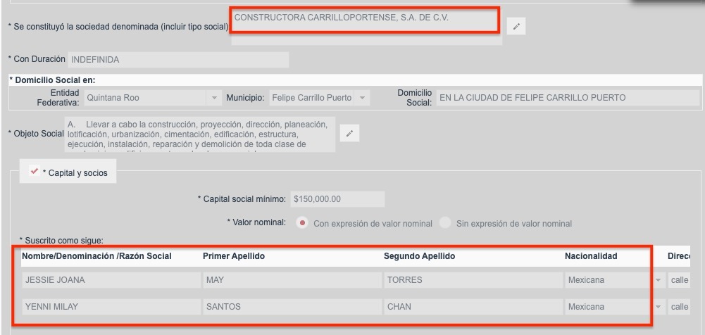 De acuerdo con la denuncia recibida en LA CHISPA, el 12 de diciembre de 2022, la Directora de Planeación, Jessie Joana May Torres, y su socia Yenni Milay Santos Chan constituyeron la razón social Constructora Carrilloportense SA de CV.
