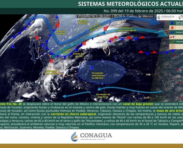 Este 19 de febrero, el Frente Frío No. 28 se desplaza sobre el Golfo de…