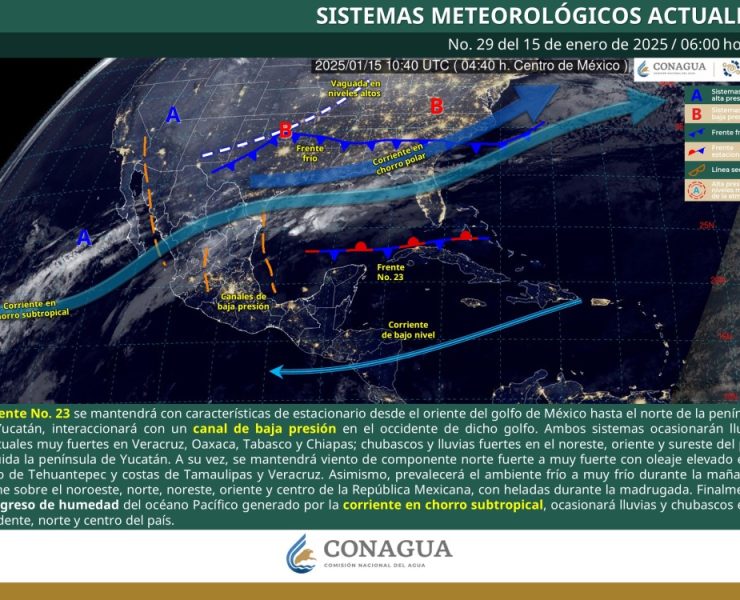 Este miércoles 15 de enero de 2025, el frente frío No. 23 mantiene su influencia…