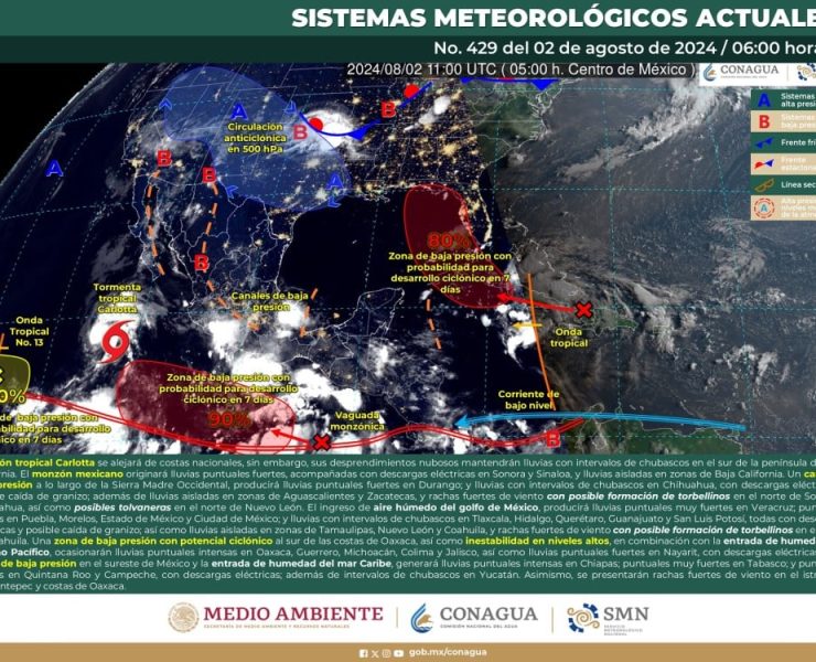 El Servicio Meteorológico Nacional (SMN), prevé que para hoy, el ciclón tropical Carlotta en el océano…