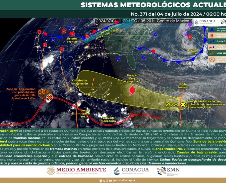 El Servicio Meteorológico Nacional (SMN) prevé para este día que, el huracán Beryl se aproximará a…