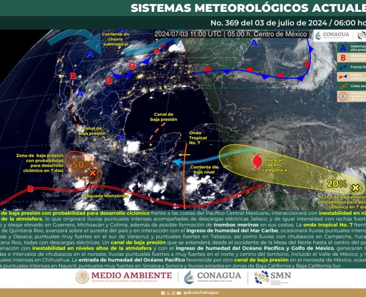 Así como lluvias intensas en Chihuahua, Nayarit, Jalisco, Colima, Michoacán, Oaxaca, Guerrero y Chiapas El…