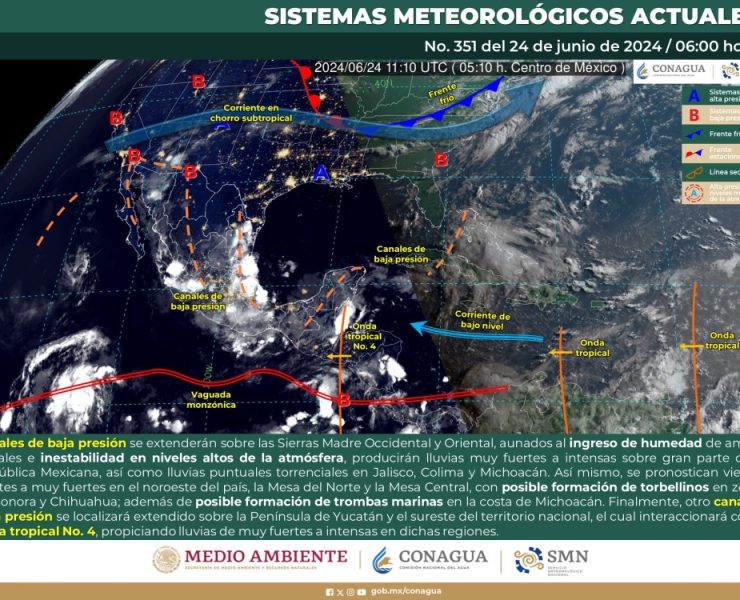 El Servicio Meteorológico Nacionaldía {SMN), canales de baja presión se extenderán sobre la Sierras Madre Occidental…