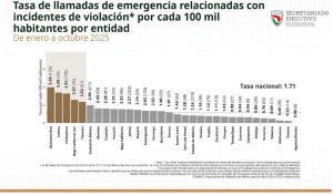 Por ejemplo, Quintana Roo está dentro de las tres entidades federativas que acumulan el 37.2 por ciento de los delitos relacionados con los incidentes de violencia de pareja; de enero a octubre el primer lugar lo tiene Jalisco, con 13.5 por ciento; el segundo lo tiene Baja California con 13.2 por ciento y le sigue Quintana Roo con el 10.6 por ciento.