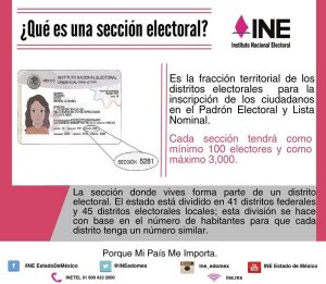 Explico, que una sección electoral debe tener como mínimo 100 integrantes y como máximo, tres mil; así mismo, cada casilla solo acepta 750 votantes, cuando es mayor, por eso existen las llamadas casillas contiguas.
