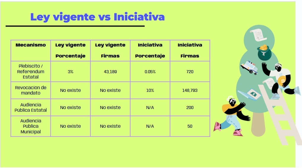 La columna vertebral de la propuesta para retomar el tema de reforma de la Ley de Participación Ciudadana para el Estado de Quintana Roo, es que estas organizaciones proponen que la mayoría de las iniciativas sean ciudadanas; hacer realidad el Plebiscito, el Referéndum y la Revocación del Mandato; este último tema, sería aplicable cuando el pueblo compruebe que su gobernante no cumpla con las expectativas de un buen gobierno.