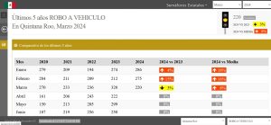 Por ejemplo, en el 2020, en el gobierno de Carlos Joaquín González, Quintana Roo cerró con 581 homicidios; el incremento viene en 2021con 585 y 2022 con 562 que fue el cambio de gobierno; para el 2023 lo homicidios tuvieron un repunte hasta llegar a 629. Para el primer trimestre del 2024, el delito en cuestión aumentó 9% en enero en relación con el 2023, pero empezó a bajar 5% en febrero y 2% en marzo. Eso sí, en robo de vehículos el incremento es del 4% en enero, 15% en febrero y una disminución en marzo del 3%; pero en términos reales el robo de unidades incrementó 18%, 16% y 8%, en enero, febrero y marzo respectivamente.
