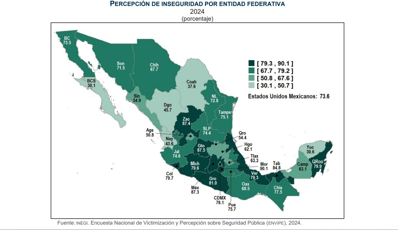 Para abonar al caso, la reciente publicación de la Encuesta Nacional de Victimización y Percepción sobre Seguridad Pública (Envipe) 2024, señala que el 79.9 por ciento de la población en Quintana Roo se siente insegura. No es para menos, desaparecidos, secuestros y ejecutados, parece ser el “pan de cada día”. Ahí se las dejo…