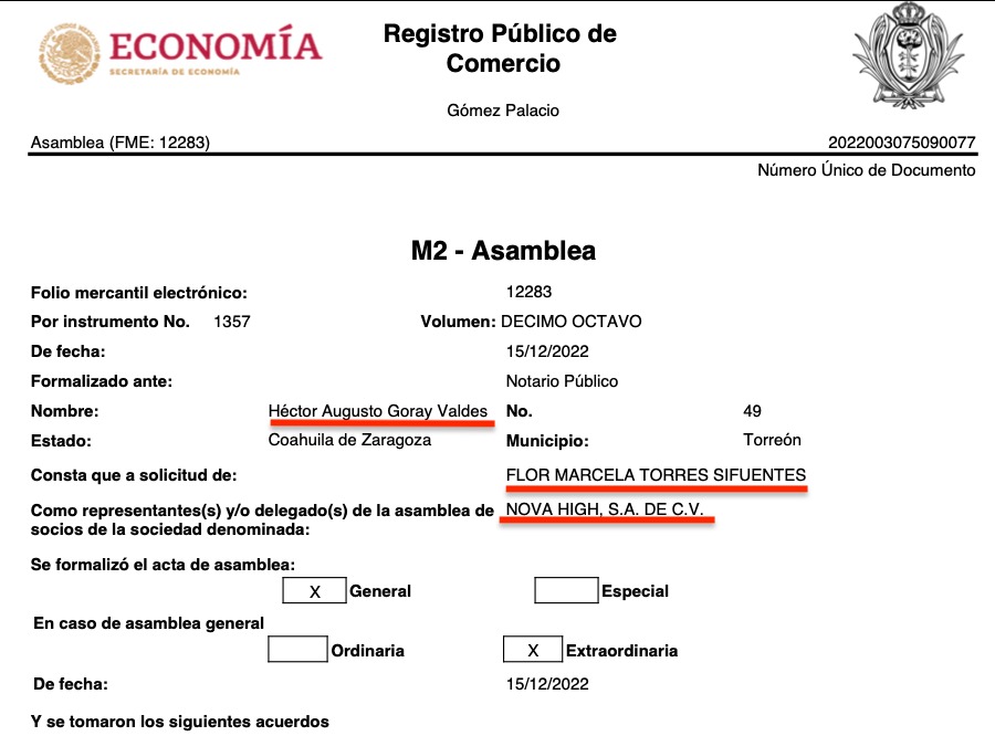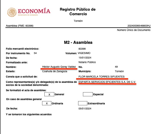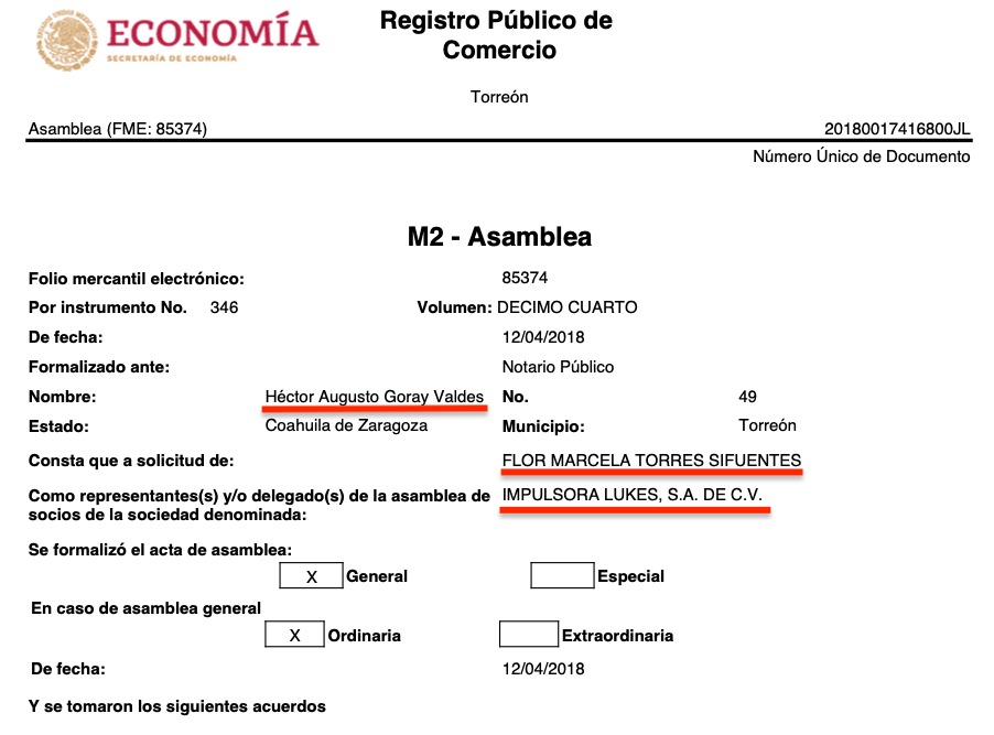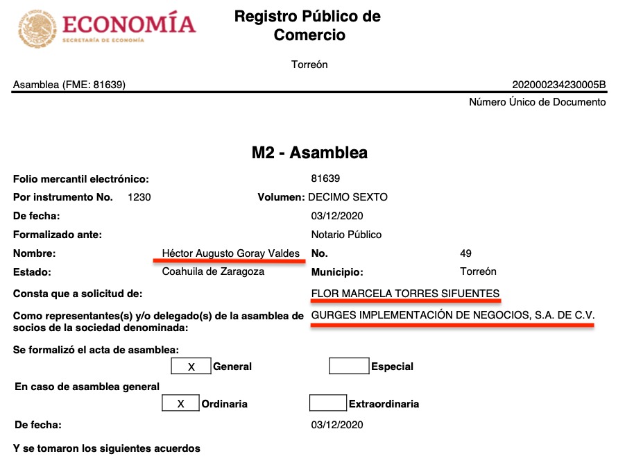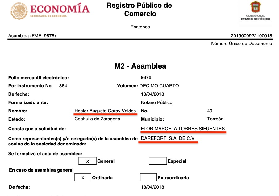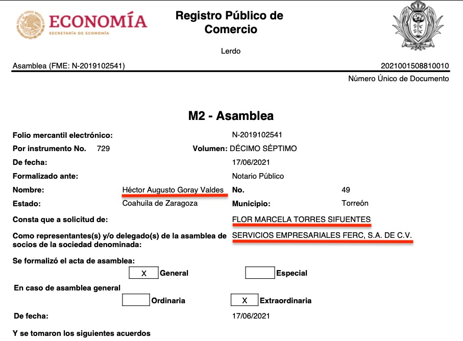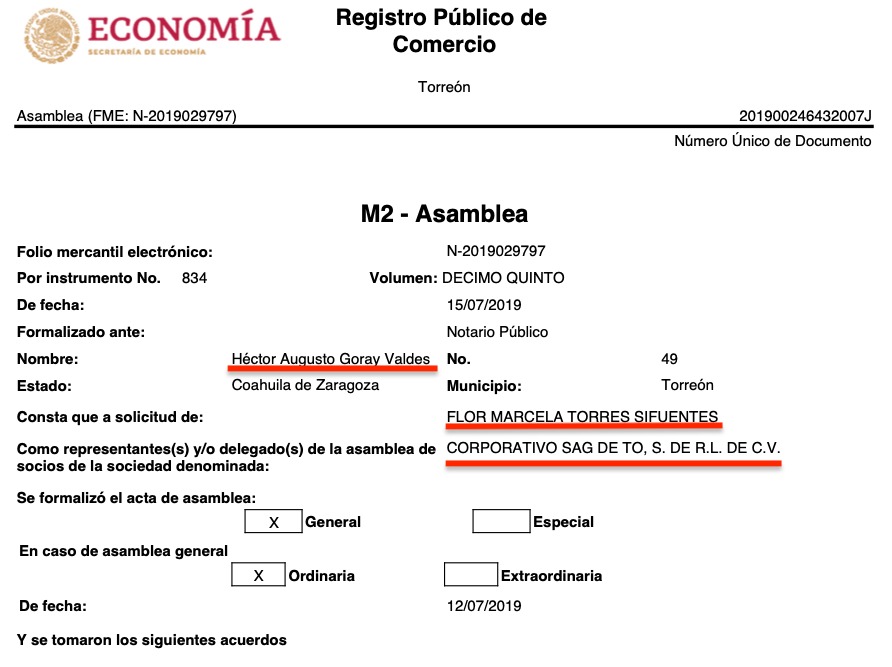 Lo curiosos es que las 16 razones sociales tienen a representantes o apoderados legales en común, todas consignadas ante la fe del Notario Público No. 49,  Héctor Augusto Goray Valdés, de Torreón, Coahuila, e igualmente todas a solicitud de Flor Marcela Torres Sifuentes, según consta en los registros públicos de comercio de las citadas empresas, que se ubican en diversas partes del país como Torreón, Coahuila, Durango, Estado de México y Jalisco.