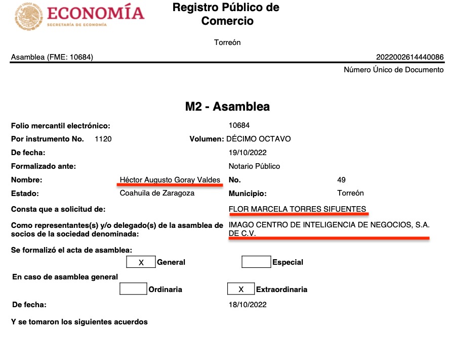 Pero fue el 2019 el año de mayores cambios. De acuerdo con los registros notariales, Intermex Comercializadora Internacional se transformó en Imago Centro de Inteligencia de Negocios en mayo de ese año; y Global Intermex se convirtió en Gurges Implementación de Negocios, ambas con los apoderados ya citados.