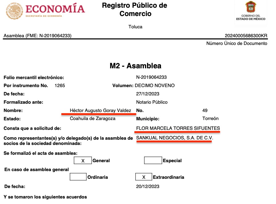 Ya encarrerados, en marzo de 2019, los propios apoderados fundaron otra empresa para sumarla al grupo: Corporativo Sag de To, donde figuran como accionistas Francisco Núñez Kaufmann, quien además es gerente, y Flor Marcela Torres Sifuentes. En dicha firma aparecen como apoderados Javier González Ruiz, Ana Karen Fierro Medina y José de Jesús Orozco Escalera. El comisario o encargado del órgano de vigilancia de la sociedad es Roberto Castillo Gordillo.