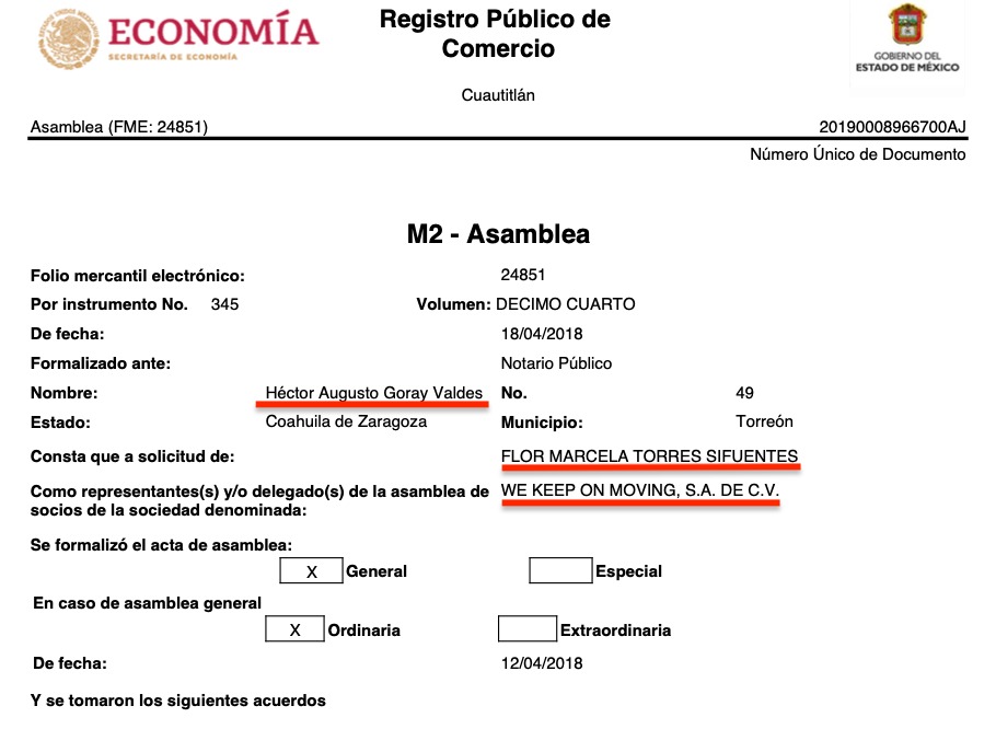 No era casual: en abril de 2018 se habían revelado en el consejo de administración de We Keep On Moving, como apoderados, Francisco Núñez Kaufmann, Ana Karen Fierro Medina y Javier González Ruiz, además de Flor Marcela Torres Sifuentes.