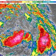 Por otra parte, la entrada de humedad proveniente del Mar Caribe, aunada a la vaguada monzónica que se ubicará sobre el sur de la Península de Yucatán y frente a las costas del Pacífico Sur Mexicano, mantendrán el temporal de lluvias puntuales intensas en Chiapas, Campeche y Quintana Roo; y puntuales muy fuertes en Yucatán, con oleaje, rachas fuertes de viento y posible formación de trombas marinas en costas de la Península de Yucatán.