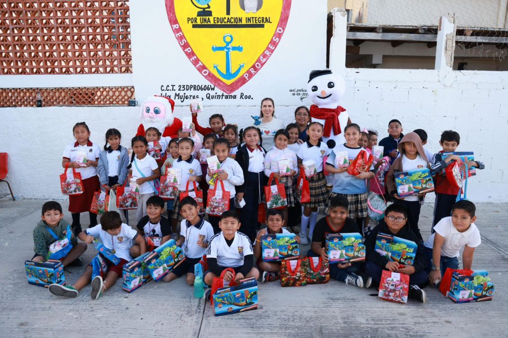 Isla Mujeres.– Con el firme compromiso de llevar alegría, convivencia y momentos especiales a las niñas y niños de Isla Mujeres, la Presidenta Municipal , Atenea Gómez Ricalde, continúa con la entrega de juguetes y esta mañana visitó las escuelas de la Isla, en el marco del programa Navidad en tu Escuela.