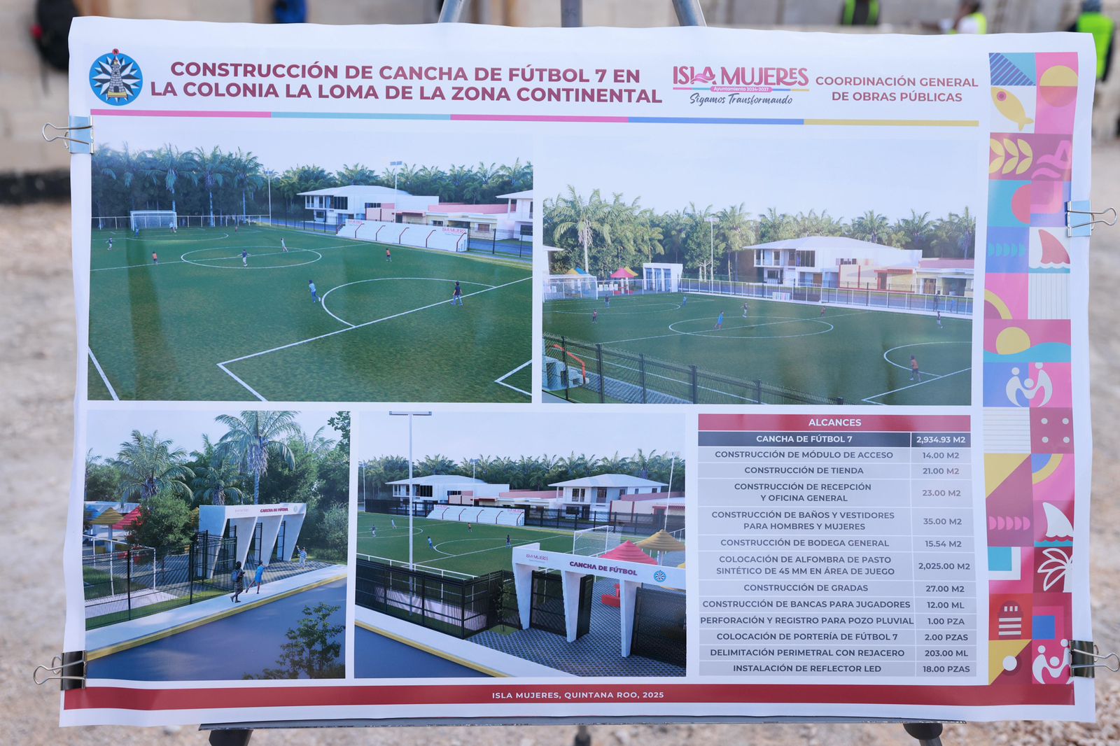 Isla Mujeres,.-Con el firme compromiso de seguir impulsando espacios dignos, seguros y recreativos para las familias isleñas, la Presidenta Municipal de Isla Mujeres, Atenea Gómez Ricalde, supervisó los trabajos de construcción de la Cancha de Fútbol 7 en la colonia La Loma, en la Zona Continental de Ciudad Mujeres.