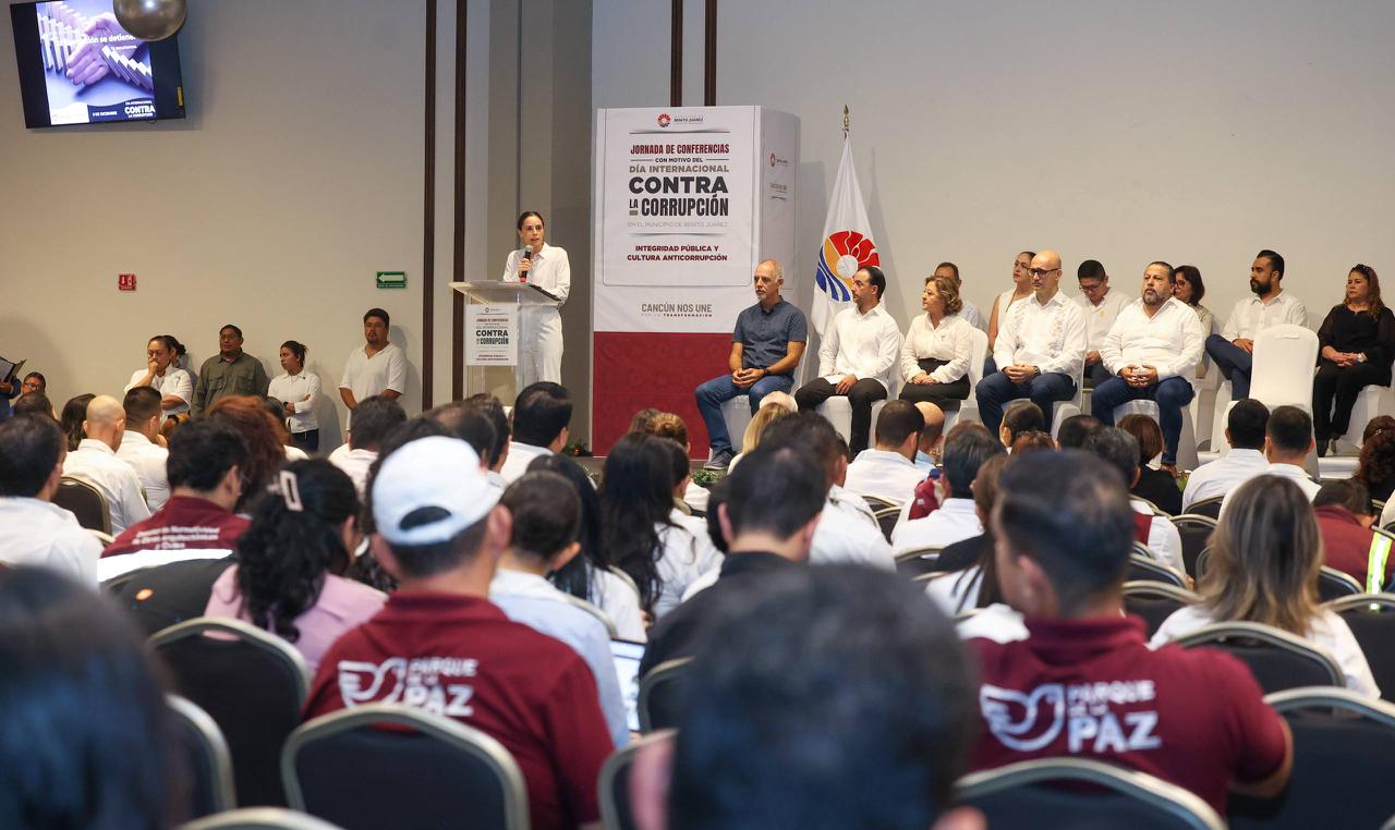Cancún.- En el marco del Día Internacional Anticorrupción, que se conmemora cada 9 de diciembre, la Presidenta Municipal, Ana Paty Peralta, encabezó el evento “Integridad Pública y Cultura Anticorrupción”, una jornada de conferencias dirigida a más de 200 servidores públicos, para fortalecer la honestidad, la transparencia y el servicio responsable a la ciudadanía.