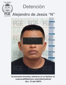 La Fiscalía General del Estado (FGE) informó sobre la detención de Jesús “N”, alias “Fiscalito”, quien presuntamente forma parte de un grupo criminal generador de violencia en la región y estaría involucrado en al menos 14 homicidios ocurridos en Tulum.