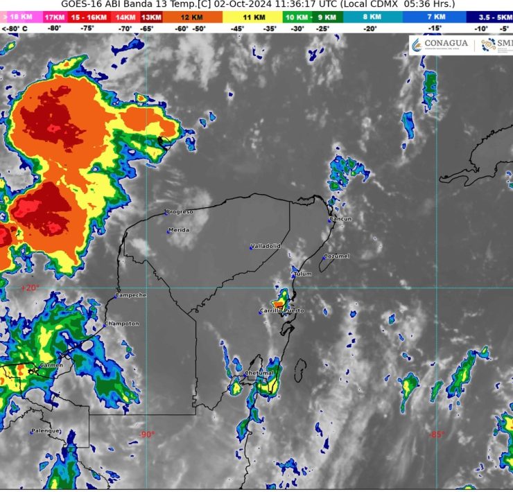 Hoy, una vaguada en niveles medios de la atmósfera y el flujo de aire marítimo tropical del Mar Caribe influirán en el clima de Quintana Roo, generando cielos medio nublados a nublados y chubascos con lluvias puntuales fuertes. Se espera actividad eléctrica en diversas regiones, con un ambiente que será muy caluroso durante el día y cálido en la noche y al amanecer. Además, se pronostican vientos con rachas de hasta 40 km/h en zonas costeras.