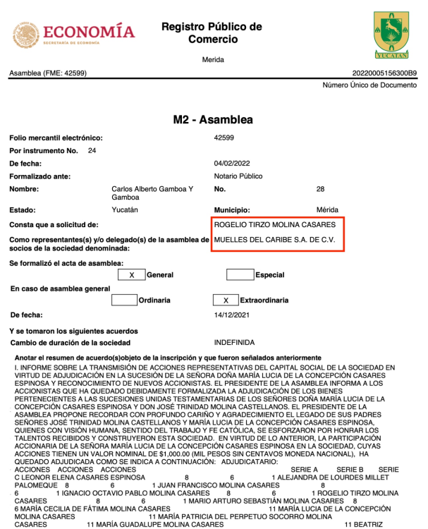 Hoy son propietarios de más de 100 empresas con operaciones en la región, con giros que van desde el transporte turístico, las excursiones acuáticas o la compraventa de terrenos, de acuerdo con una revisión al Registro Público de la Propiedad y del Comercio. Una de estas empresas, Muelles del Caribe, es la promovente del embarcadero que ha causado polémica y una resistencia ciudadana que promete no renunciar hasta frenar el proyecto.