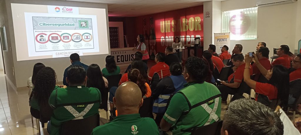 Cancún.– Con el objetivo de prevenir riesgos en el entorno digital, el Sistema para el Desarrollo Integral de la Familia (DIF) Benito Juárez, a través de la Dirección de Prevención de Riesgos Psicosociales de Niñas, Niños y Adolescentes, y la Coordinación de la Cultura de la Legalidad, impartió la plática “Protegiendo a tus hijos en la era digital” en centros educativos y empresas privadas.
