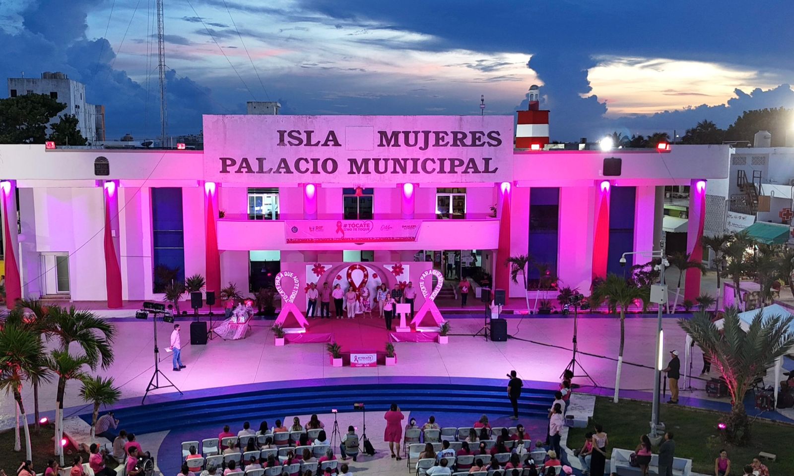 Encendido Rosa 2025 en Isla Mujeres para fortalecer la prevención y la lucha contra el cáncer de mama