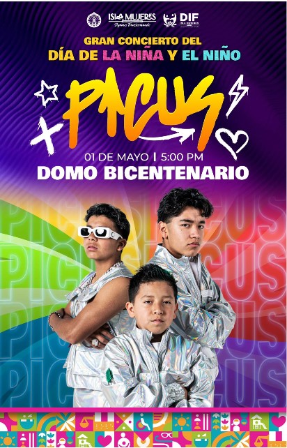 Para cerrar con broche de oro, el 1 de mayo se llevará a cabo el Gran Concierto del Día del Niño, con la presentación del grupo juvenil Los Picus, en el Domo Bicentenario de la Zona Insular, desde las 17:00 horas.
