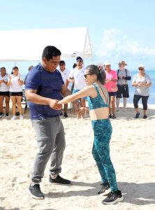 De manera complementaria, este sábado 27 de mayo, en la playa Inclusiva “Punta Esmeralda”, Gaby Anahí Flores participó con pacientes del Centro de Rehabilitación Integral Municipal (CRIM), en el programa de activación física “¡Actívate Ya!”.