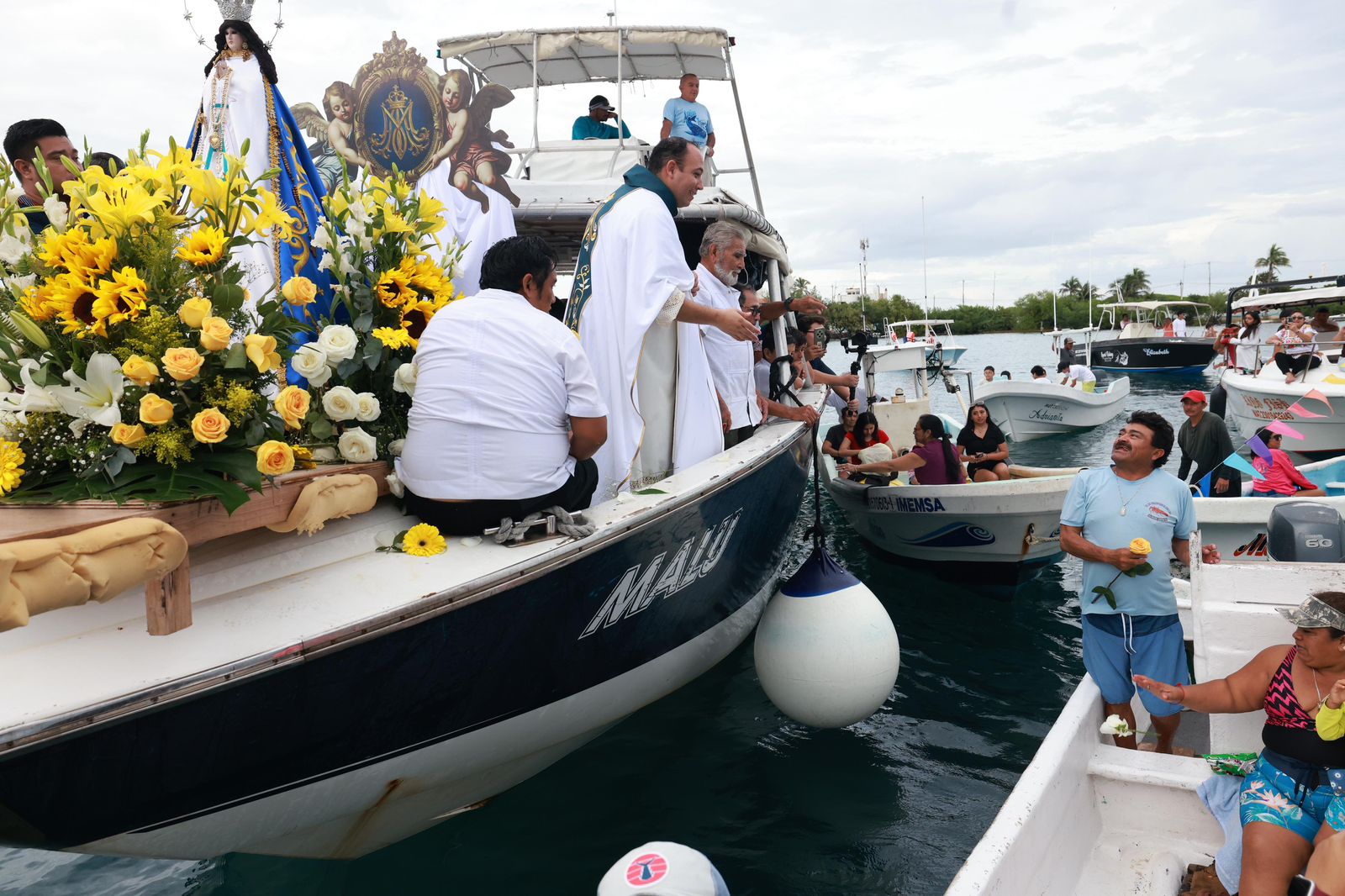 Devotos de Isla Mujeres celebran procesión marítima a la Inmaculada Concepción