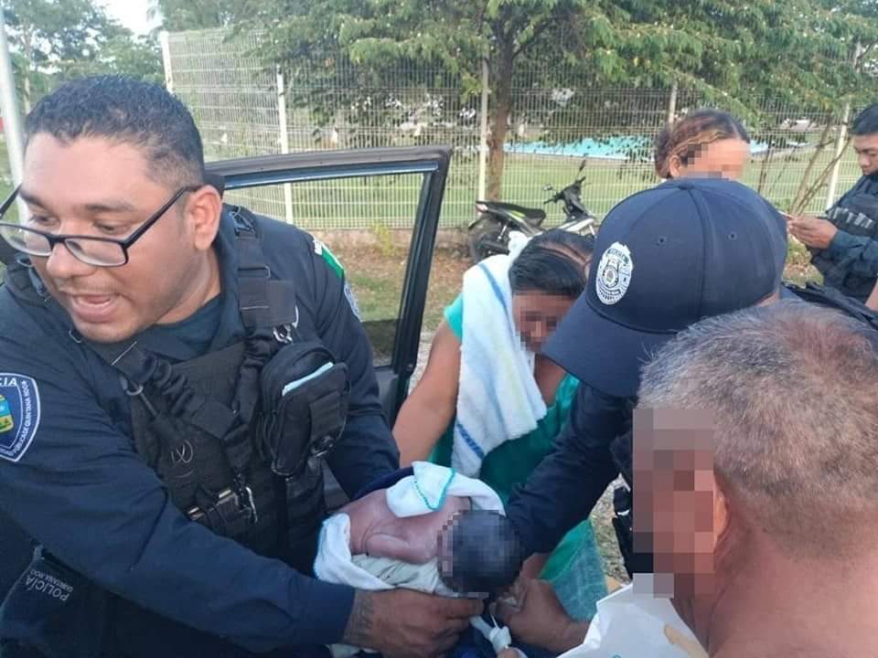 Se convirtieron en padrinos de un varón, afortunadamente y gracias a los esfuerzos de los uniformados, el bebé nació sano y salvo fueron trasladados madre e hijo al hospital general de Chetumal.