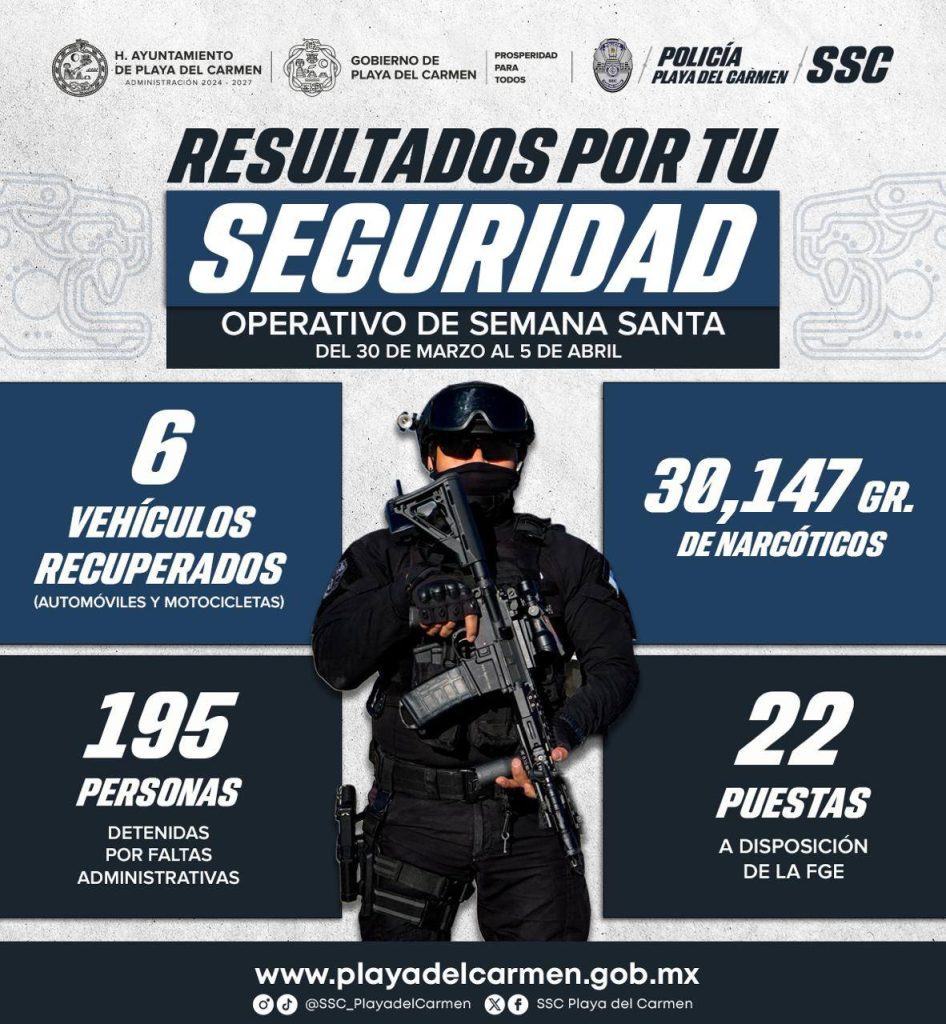 Con estos resultados, la SSC de Playa del Carmen reafirma su compromiso de garantizar la seguridad, prevenir el delito y mantener el orden durante la temporada vacacional.