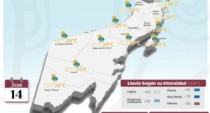 La Coordinación Estatal de Protección Civil de Quintana Roo señaló que para las próximas horas se pronostica lluvias con chubascos dispersos y posibles descargas eléctricas para los municipios de: Puerto Morelos, Lázaro Cárdenas, Isla Mujeres, Felipe Carrillo Puerto, Tulum y Solidaridad.