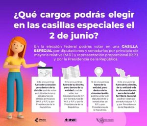 Los cargos por los que que los visitantes podrá votar en las casillas especiales son presidencia de la República, diputaciones de mayoría relativa y senadurías.