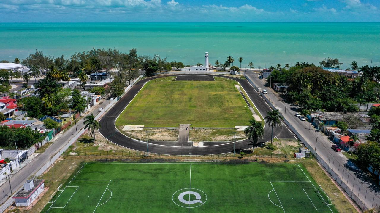Mara Lezama agregó que posteriormente se colocará el tapete sintético de tartán en tiras de 400 metros, material que ya se encuentra en Chetumal y que será instalado una vez concluida esta etapa técnica.