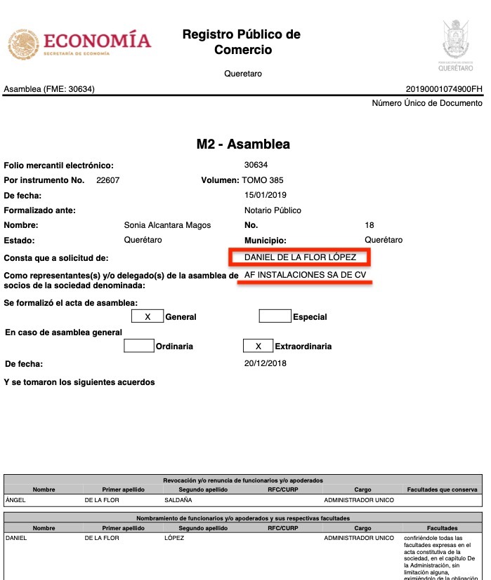 En ambas empresas sale a relucir el nombre de Daniel de la Flor López, quien en ESL es socio, junto a su hermano Alejandro de la Flor López; mientras que en AF Instalaciones, donde uno de los socios fundadores fue Otilio Valenzuela Pardo y Daniel de la Flor López es desde el año 2019 el administrador único.