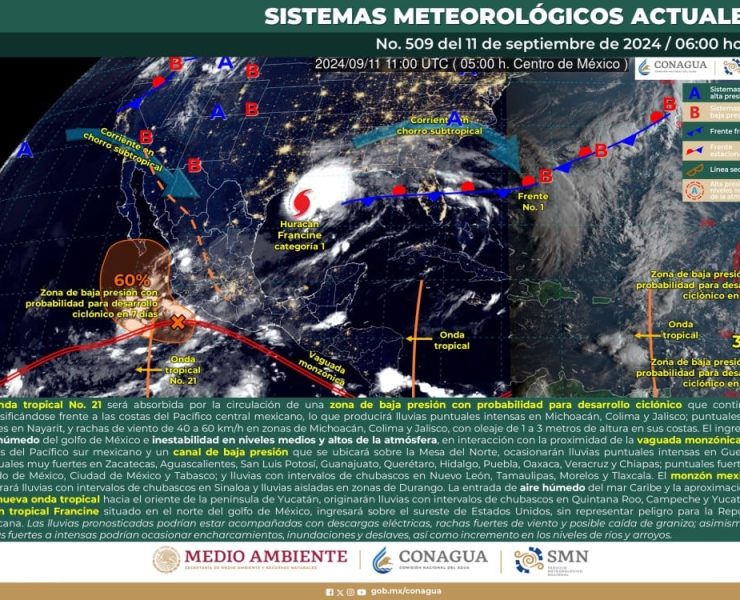 El Servicio Meteorológico Nacional (SMN), prevé que para hoy, la onda tropical No. 21 será absorbida…