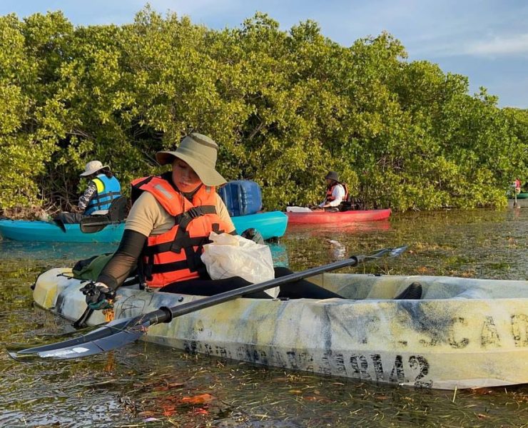 Voluntarios y servidores públicos se adentraron a bordo de kayak para retirar residuos sólidos Cancún,…