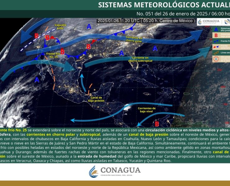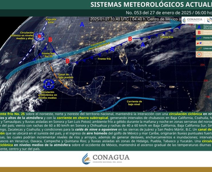 El frente frío No. 25 se ha convertido en el protagonista de las condiciones meteorológicas…
