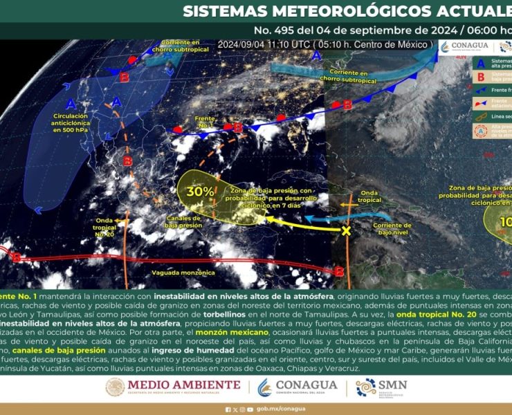 Servicio Meteorológico Nacional (SM), prevé que para este día, una baja presión en el océano Pacífico…